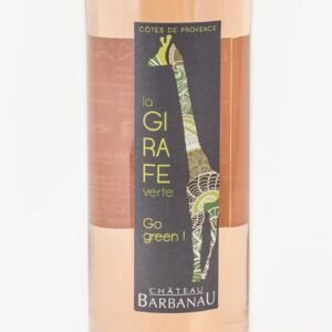 Vin, friand, joyeux, tout en légèreté, la Girafe Verte contient 100% de vin Biodynamique, 100% d’amour pour la nature et 100% de plaisir.Le Château Barbanau, certifié en agriculture biologique, classé en AOC Côtes-de-Provence, est situé sur la commune de Roquefort-la-Bédoule. A 360 mètres d’altitude, sur un terroir argilo-calcaire, le domaine étire ses 23 hectares dans un cirque de verdure au pied d’une belle falaise. Les cépages présents sur le Domaine, Cinsault, Rolle, Clairette, Grenache, Syrah et Mourvèdre bénéficient du climat méditerranéen et de la fraîcheur due à la position du vignoble.Vers 1889 Emile Bodin, l’arrière grand-père, a choisi de devenir vigneron à Cassis et il crée le vignoble de Clos Val Bruyère. 100 ans plus tard, Sophie et Didier accompagnés de leurs parents, décident de changer de vie pour exploiter les quelques hectares de vignes reçus en héritage et ainsi faire revivre Clos Val Bruyère. La même année, ils font l’acquisition de Château Barbanau avec sa cave abandonnée et sa production vendue à la coopérative. Ils restaurent les chais et élaborent leur premier millésime en 1989. Certifiés Bio depuis 2008 et en Biodynamie depuis 2014,ensemble ils perpétuent l’histoire de Barbanau…Histoire que continuera peut être à écrire leur fille Juliette.